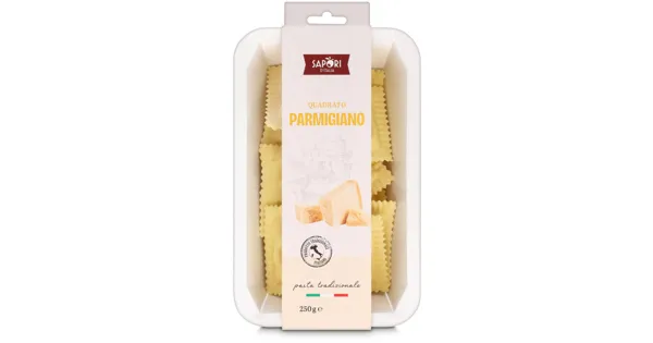 Teigwaren mit Käsefüllung – Zutaten: Teigwaren (HARTWEIZENGRIESS, EIER, Wasser, Kochsalz), Käsefüllung 49% (Ricotta [MOLKE, RAHM, Kochsalz], KÄSE [Parmigiano Reggiano DOP] 13%, Kochsalz, Paniermehl [WEIZENMEHL, Hefe, Kochsalz], Pfeffer), Reismehl. Kann Spuren von BAUMNUSS, CASHEWNUSS, FISCH, HASELNUSS, KREBSTIEREN, MACADAMIANUSS, MANDELN, PARANUSS, PECANNUSS, PISTAZIEN enthalten. Zutaten: Teigwaren (HARTWEIZENGRIESS, EIER, Wasser, Kochsalz), Käsefüllung 49% (Ricotta [MOLKE, RAHM, Kochsalz], KÄSE [Parmigiano Reggiano DOP] 13%, Kochsalz, Paniermehl [WEIZENMEHL, Hefe, Kochsalz], Pfeffer), Reismehl. Kann Spuren von BAUMNUSS, CASHEWNUSS, FISCH, HASELNUSS, KREBSTIEREN, MACADAMIANUSS, MANDELN, PARANUSS, PECANNUSS, PISTAZIEN enthalten.