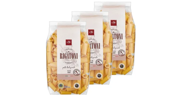 Teigwaren Die Sapori d'Italia Rigatoni sind authentische italienische Teigwaren mit einem unverwechselbaren Biss. Hergestellt aus hochwertigem Hartweizengriess, überzeugen sie durch ihre vielseitige Verwendbarkeit in der Küche. Perfekt für traditionelle Pasta-Gerichte, bieten sie ein hervorragendes Preis-Leistungsverhältnis für Liebhaber der italienischen Küche. – Zutaten: HARTWEIZENGRIESS (Italien, USA, Australien). Zutaten: HARTWEIZENGRIESS (Italien, USA, Australien).