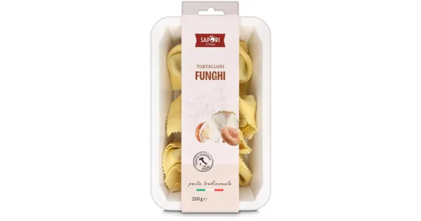 Teigwaren mit Pilzfüllung – Zutaten: Teigwaren (HARTWEIZENGRIESS, EIER, Wasser, Kochsalz), Pilzfüllung 49% (Pilzzubereitung 20% [Pilze [Steinpilze 4%, Austern-Seitlinge4%, Shiitake 4%, Japanische Stockschwämmchen 4%, Champignons 3%]], Olivenöl, Sonnenblumenöl, Petersilie, Kochsalz, Knoblauch), Ricotta [MOLKE, RAHM, Kochsalz], Paniermehl [WEIZENMEHL, Hefe, Kochsalz], KÄSE [Fontal], KÄSE [Parmigiano Reggiano DOP], Kartoffelflocken, Kochsalz, Pfeffer), Reismehl. Kann Spuren von BAUMNUSS, CASHEWNUSS, FISCH, HASELNUSS, KREBSTIEREN, MACADAMIANUSS, MANDELN, PARANUSS, PECANNUSS, PISTAZIEN enthalten. Zutaten: Teigwaren (HARTWEIZENGRIESS, EIER, Wasser, Kochsalz), Pilzfüllung 49% (Pilzzubereitung 20% [Pilze [Steinpilze 4%, Austern-Seitlinge4%, Shiitake 4%, Japanische Stockschwämmchen 4%, Champignons 3%]], Olivenöl, Sonnenblumenöl, Petersilie, Kochsalz, Knoblauch), Ricotta [MOLKE, RAHM, Kochsalz], Paniermehl [WEIZENMEHL, Hefe, Kochsalz], KÄSE [Fontal], KÄSE [Parmigiano Reggiano DOP], Kartoffelflocken, Kochsalz, Pfeffer), Reismehl. Kann Spuren von BAUMNUSS, CASHEWNUSS, FISCH, HASELNUSS, KREBSTIEREN, MACADAMIANUSS, MANDELN, PARANUSS, PECANNUSS, PISTAZIEN enthalten.