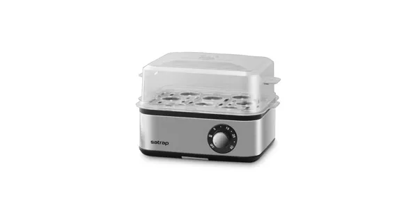 Für 1–8 Eier. Akkustisches Endsignal. Edelstahl-Heizschale. Kontrolleuchte. Timer-Funktion 5–35 Min.. Zubehör: Schale für pochiertes Ei, Messbecher, Eierträge.