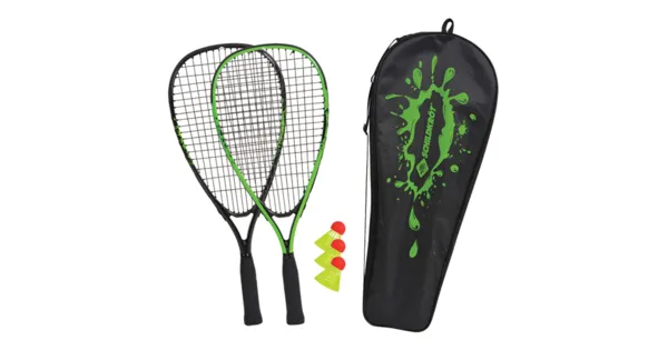 Speed-Badminton pur: Das neue Speed-Badminton Set von Schildkröt kommt inklusive 3er Dose Bälle und in einer praktischen Tasche mit Tragegurt. Die sehr handlichen Schläger (Länge 54,5cm, Gewicht 165g, Rahmenprofil 17,3mm) sind 4cm kürzer als das normale Speed-Badminton Racket und dadurch deutlich handlicher; Anfänger, Freizeit-Spieler aber auch Kinder haben mit diesem Set wesentlich mehr Freude und ein schnelleres Erfolgserlebnis! Speed-Badminton (oft auch als Crossminton bezeichnet) ist das wohl vielseitigste Rückschlagspiel der Welt! Gespielt wird am Strand, im Park oder Garten - ganz ohne Netz. Das Besondere an Speed-Badminton ist die Windstabilität - wer kennt nicht die frustrierenden Versuche, bei leichtem Wind Federball zu Spielen? Der windstabile Speed-Badminton Ball ist schwerer und kleiner als ein normaler Federball und bringt dabei ein Extra an Speed. Die alte, sehr bekannte deutsche Marke Schildkröt wurde bereits 1896 gegründet. Neben Tischtennis und Fitness bietet Schildkröt heute eine grosse Auswahl an Funsport Produkten und gilt als marktführend in diesem Bereich.