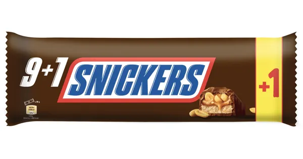 Snickers, 9 plus 1 gratis, 500 g (100 g = 1.26)