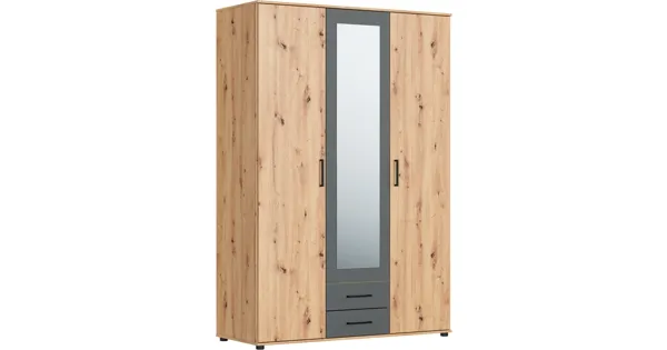 Der perfekte Drehtürenschrank für dein Zuhause. Mit seinen 137 x 201 cm bietet er dir nicht nur viel Stauraum, sondern auch ein elegantes Design in zeitlosem Weiss oder stilvollem Artisan Dekor. Die drei Türen, ausgestattet mit einem praktischen Spiegel, sorgen dafür, dass du immer elegant angezogen bist. Zwei geräumige Schubladen und vier Tablare bieten dir zudem Platz für all deine Lieblingsstücke.