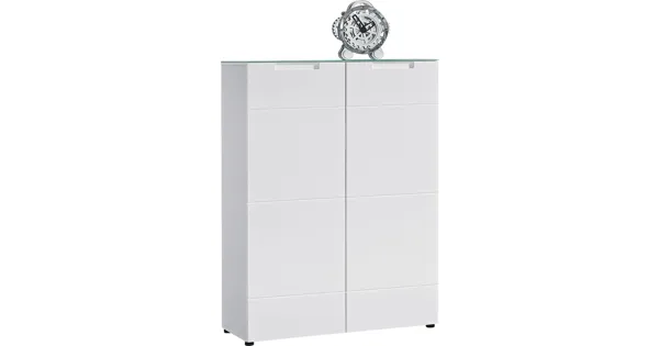 Im zeitlosen Design erstrahlt die Schuhkommode Mailand in jeder Wohnung. Die Front aus MDF Hochglanz sorgt für einen seidigen Schimmer auf der Oberfläche. Ausserdem gibt die integrierte Milchglasabdeckung dem Möbel das gewisse Etwas. Der Stauraum für Ihre Schuhe verbirgt sich hinter zwei Türen auf vier praktischen Einlegeböden. Für alle, die gerne Farbakzente mit Accessoires setzen, ist die Schuhkommode Mailand das ideale Möbelstück.