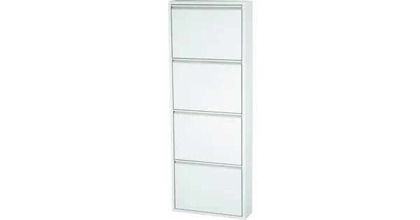 Mit diesem Schuhkipper Berry 51 kannst du eine Menge von Schuhen verräumen und nebeneinander platzieren, welcher ideal ist für kleine und schmale Flure in deinem Zuhause. Er hat vier Fächer und du kannst es problemlos herumschieben. Ein optimales Möbelstück für alle Schuhliebhaber.
