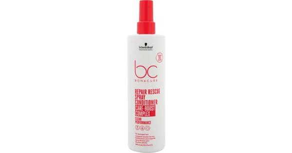 Der Repair Rescue Conditioner Spray von Schwarzkopf Professional Bonacure repariert strapaziertes und geschädigtes Haar im Handumdrehen. Das Pflegeprodukt kannst du einfach nach der Haarwäsche ins Haar sprühen und musst es nicht mehr auswaschen. Es glättet die Haarstruktur und sorgt so für Geschmeidigkeit und Glanz. Zudem wird die Kämmbarkeit verbessert und das Haar lässt sich leichter frisieren. Kann auch als Hitzeschutz vor dem Föhnen verwendet werden.Für ein perfektes Ergebnis die weiteren Produkte der Repair Rescue Serie verwenden.