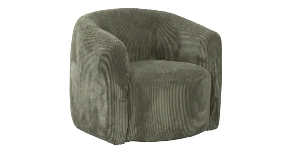 Der Sessel Alken besticht durch sein minimalistisches und funktionales Design. Mit seiner runden Form bietet er eine komfortable Sitzgelegenheit, die zum Verweilen einlädt. Dank seiner Drehfunktion kann er bequem in alle Richtungen bewegt werden. Das macht ihn perfekt für entspannte Leseabende oder gemütliche Gespräche. Der robuste Sessel ist bis 120 kg belastbar und garantiert somit Stabilität. Der weiche Cordstoffbezug in dezenter Farbe setzt stilvolle Akzente in deinem Zuhause.