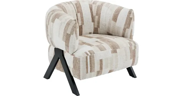 Dieser Sessel bringt Farbe und Komfort in dein Zuhause. Das markante Design mit geometrischem Muster in Beige und Braun macht ihn zu einem echten Blickfang. Die weiche Polsterung und die geschwungene Rückenlehne sorgen für bequemes Sitzen. Die stabilen Beine aus schwarzem Metall geben dem Sessel einen modernen Look und sicheren Stand. Perfekt, um zu entspannen oder deinem Raum einen stilvollen Akzent zu verleihen.