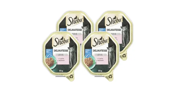 Alleinfuttermittel für ausgewachsene Katzen - Tiernahrung Feine Stückchen, umhüllt von zart schmelzendem Gelee. Tag für Tag ein kulinarischer Hochgenuss, den deine Katze lieben wird. Zubereitet mit feinen Stückchen, da wird jeder Bissen zu einem wahren Genuss. Erhältlich in praktischen, recyclingfähigen SHEBA® Katzenfutterschalen mit je 85g.