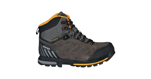 Du liebst die Natur und suchst nach einem Wanderschuh, der dich bei jedem Schritt unterstützt? Der Sherpa Herren-Wanderschuh Pulao ist genau das Richtige für dich. Mit seinem sportlichen Design in klassischem Braun bietet er nicht nur Stil, sondern auch höchste Funktionalität. Denn die Kombination aus atmungsaktivem und wasserdichtem Obermaterial hält deine Füsse stets trocken und komfortabel, egal bei welchem Wetter. Eine robuste Gogrip/Multigrip-Sohle garantiert dir sicheren Halt auf fast jedem Untergrund, während die innovative Ortholite-Innensohle Schläge absorbiert und für angenehmen Tragekomfort sorgt. Und dank der HydroGuard-Membrane bleibst du auch bei plötzlichen Regenschauern geschützt. Der mittelhohe Schaft und die Schnürung geben deinen Knöcheln zudem extra Stabilität auf anspruchsvollen Trails. Maximiere dein Outdoor-Erlebnis mit dem Sherpa Pulao und geniesse jeden Moment in der Natur. Warte nicht länger und überzeuge dich selbst von der Qualität und Langlebigkeit dieses unverzichtbaren Wanderschuhs.