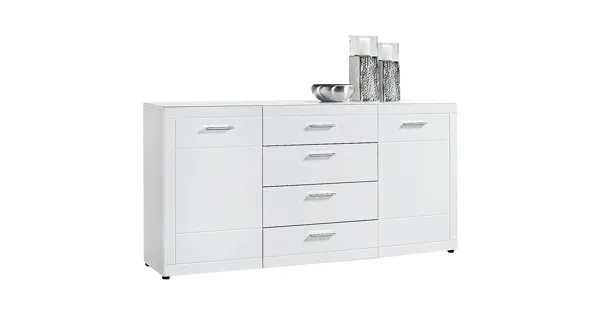 Das Sideboard Atlantis begeistert Liebhaber des modernen und schlichten Designs auf den ersten Blick. Das Hochglanz-Design verleiht dem Möbelstück eine besondere Ausstrahlung. Mit einigen Accessoires auf der grossen Oberfläche wird diese Kommode zum Kunstobjekt in deinen eigenen vier Wänden. Genügend Stauraum verbirgt sich hinter den zwei Türen und den vier Schubladen. Hole dir diesen geschmackvollen Look ins Haus mit dem Sideboard Atlantis.