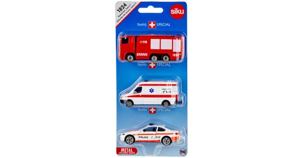 Notruf-Set "Swiss 1" Das Siku Nutzfahrzeug begeistert mit seiner detailgetreuen Darstellung im Massstab 1:87 und ist perfekt für kleine Fans realistischer Fahrzeuge ab 3 Jahren geeignet. Mit einer robusten Bauweise und einer Länge von 8 cm bietet es unendlichen Spielspass. Die leuchtend rote Farbgebung macht das Modell zu einem echten Hingucker in jeder Sammlung.