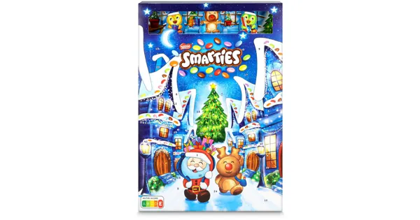 Gefüllte Milchschokolade mit 8,4% Schokolinsen mit Zuckerüberzug, gefüllte Milchschokolade mit 9,8% Schokolinsen mit Zuckerüberzug und Hohlkörper aus Milchschokolade gefüllt mit 13% Schokolinsen mit Zuckerüberzug. HOHLKÖRPERMILCHSCHOKOLADE ENTHÄLT NEBEN KAKAOBUTTER AUCH ANDERE PFLANZLICHE FETTE. Kakao: 25% mindestens in Milchschokoladen-Hohlfigur Der Smarties Adventskalender mit Milchschokolade bringt Farbe in die Adventszeit.Die ganze Familie wird gespannt sein zu entdecken, welcher Smarties-Favorit hinter jedem Fenster steckt. Egal ob Weihnachtsstrümpfe, Schneemänner, Rentiere oder Pinguine – Sie alle haben einen leckeren cremigen Kern und Smarties mini auf der Rückseite.Und für das grosse Finale am Heiligabend hat sichein mit Smarties gefüllter Schoko-Weihnachtsmann versteckt. Schütteln und gut hinhören.Zutaten aus der farbenfrohen Palette der Natur. Ohne künstliche Farbstoffe oder Konservierungsmittel.Wir verwenden nur qualitativ hochwertige Kakaobohnen aus 100 % zertifiziertem nachhaltigem Anbau durch den Nestle Cocoa Plan. – Zutaten: Zucker, MAGERMILCHPULVER, Kakaobutter¹, Kakaomasse¹, pflanzliche Fette (Palm, Raps, Shea), BUTTERREINFETT, MOLKENERZEUGNIS, MILCHPULVER, Emulgator (Lecithine), Stärke, Verdickungsmittel (Gummi arabicum), WEIZENMEHL, Glukosesirup, MOLKENERZEUGNIS, Frucht und Pflanzenkonzentrate (Rettich, Färberdistel, schwarze Johannisbeere, Hibiskus, Karotte, Zitrone), Überzugsmittel (Carnaubawachs, Bienenwachs weiss), natürliches Vanillearoma, natürliches Aroma, Spirulinakonzentrat, Farbstoff (Betenrot, Carotin, Kurkumin), GERSTENMALZEXTRAKT. Kann enthalten: ERDNÜSSE, NÜSSE (CH: MANDELN, PARANÜSSE, CASHEWNÜSSE, HASELNÜSSE, WALNÜSSE, MACADAMIANÜSSE, PECANNÜSSE, PISTAZIEN) und SOJA. *Rainforest Alliance-zertifiziert. Mehr erfahren unter ra.org. Zutaten: Zucker, MAGERMILCHPULVER, Kakaobutter¹, Kakaomasse¹, pflanzliche Fette (Palm, Raps, Shea), BUTTERREINFETT, MOLKENERZEUGNIS, MILCHPULVER, Emulgator (Lecithine), Stärke, Verdickungsmittel (Gummi arabicum), WEIZENMEHL, Glukosesirup, MOLKENERZEUGNIS, Frucht und Pflanzenkonzentrate (Rettich, Färberdistel, schwarze Johannisbeere, Hibiskus, Karotte, Zitrone), Überzugsmittel (Carnaubawachs, Bienenwachs weiss), natürliches Vanillearoma, natürliches Aroma, Spirulinakonzentrat, Farbstoff (Betenrot, Carotin, Kurkumin), GERSTENMALZEXTRAKT. Kann enthalten: ERDNÜSSE, NÜSSE (CH: MANDELN, PARANÜSSE, CASHEWNÜSSE, HASELNÜSSE, WALNÜSSE, MACADAMIANÜSSE, PECANNÜSSE, PISTAZIEN) und SOJA. *Rainforest Alliance-zertifiziert. Mehr erfahren unter ra.org.