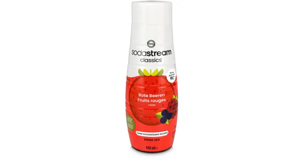Konzentrat zur Zubereitung erfrischender Sprudelgetränke mit rote Beeren-Geschmack. Mit Süssungsmitteln Jetzt können Sie mit der SodaStream® Classics Rote Beeren Soda-Getränkemischung Ihre nostalgischen Lieblingsaromen zu Hause nachkochen. Unsere SodaStream® Classics-Getränkemischungen sind zu jeder Tageszeit eine perfekte Erfrischung und verleihen Sprudelwasser Spass und Frische für ein persönliches Erlebnis zu Hause.Unsere klassischen Getränkemischungen schmecken genauso wie die Marken, die Sie kennen, enthalten aber 50 % weniger Zucker als im Laden gekaufte Limonaden und keinen Maissirup mit hohem Fruchtzuckergehalt oder Aspartam. Ausserdem können Sie so wenig oder so viel hinzufügen, wie Sie möchten! – Zutaten: Wasser, Säuerungsmittel (Citronensäure), Himbeersaftkonzentrat (2%), Säureregulator (Natriumcitrate), natürliches Rote Beerenaroma mit anderen natürlichen Aromen, Süssungsmittel (Acesulfam K, Sucralose), schwarzes Karottensaft-Konzentrat, Karotten- und Hibiskusblüten-Konzentrat, Konservierungsstoffe (Kaliumsorbat, Natriumbenzoat). Zutaten: Wasser, Säuerungsmittel (Citronensäure), Himbeersaftkonzentrat (2%), Säureregulator (Natriumcitrate), natürliches Rote Beerenaroma mit anderen natürlichen Aromen, Süssungsmittel (Acesulfam K, Sucralose), schwarzes Karottensaft-Konzentrat, Karotten- und Hibiskusblüten-Konzentrat, Konservierungsstoffe (Kaliumsorbat, Natriumbenzoat).