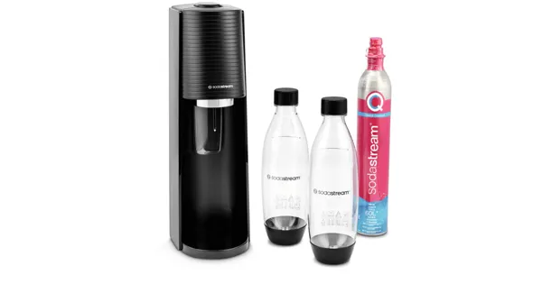 Verwandle Leitungswasser in Sekunden in frisches Sprudelwasser. Entworfen für die moderne Küche, verfügt es über die neue Quick Connect Technologie für schnelles und einfaches Einsetzen der CO2-Zylinder. Set beinhaltet: 1x SodaStream TERRA™ 1x 60L Quick Connect Zylinder 2x 1L spülmaschinenfeste Fuse Flasche