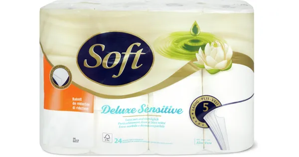In Mehrfach- oder Sonderpackungen, z.B. Deluxe Sensitive, FSC®, 24 Rollen, 16.65 statt 23.80, Angebot gilt nur vom 16.12. bis 29.12.2025, solange Vorrat.