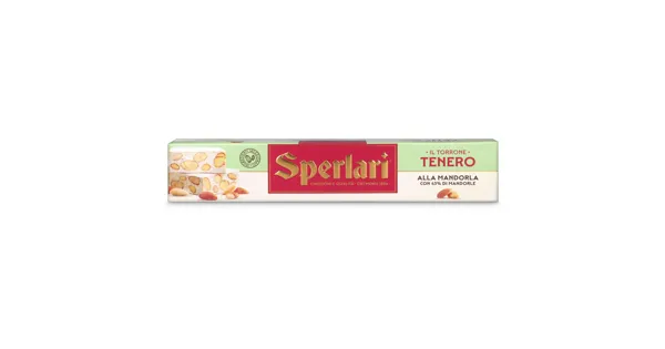 Weiches Mandel-Nougat – Zutaten: MANDELN (43%), Glukose-Fructosesirup, Zucker, Honig (2.5%), Oblaten (Kartoffelstärke, Wasser), EIWEISS, natürliches Zitronenaroma, Aroma. Kann andere...