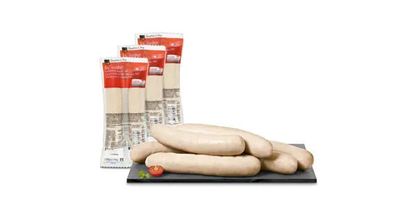 Fleischerzeugnis aus Kalb- und Schweinefleisch mit Milch – Zutaten: Kalbfleisch 37% (Schweiz), MILCH 25% (Schweiz [Appenzell]), Speck (Schweiz), Schweinefleisch 13% (Schweiz), Kochsalz jodiert, Gewürze, Stabilisatoren (E 262, E 450, E 452), Zitronensaftpulver. Wursthülle: Schweinedarm. Zutaten: Kalbfleisch 37% (Schweiz), MILCH 25% (Schweiz [Appenzell]), Speck (Schweiz), Schweinefleisch 13% (Schweiz), Kochsalz jodiert, Gewürze, Stabilisatoren (E 262, E 450, E 452), Zitronensaftpulver. Wursthülle: Schweinedarm.