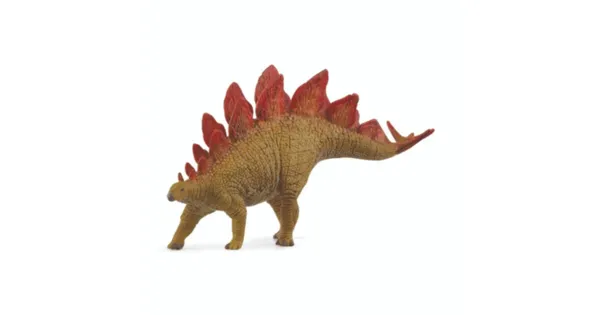 Die gewaltigen Knochenplatten auf dem Rücken des Stegosaurus sind ziemlich beeindruckend. Meistens ist der Pflanzenfresser aber friedlich. Wenn man ihn beim Grasen stört oder ihn ärgert, kann er aber schon mal ungemütlich werden. Dann schlägt er mit seinem imposanten Stachelschwanz um sich. Also lieber Freundschaft schliessen mit dem neun Meter langen Urzeitgiganten!Den Stegosaurus erkennt man schon von Weitem, und das nicht nur, weil er so riesig ist: Seine feuerrote Doppelreihe an geschwungenen Knochenplatten auf dem Rücken ist unverkennbar. Sie bildet einen schönen Kontrast zur gelblichen Echsenhaut. Mit gesenktem Kopf stapft er über die Wiesen und hält dabei seinen langen Schwanz immer ein wenig in die Höhe. Wahrscheinlich ist er mal wieder mit Grasen beschäftigt. Das tut der Stegosaurus den lieben langen Tag, denn bis der 4,5 Tonnen schwere Pflanzenfresser endlich satt ist, dauert es eine Weile. Wer will auch mal probieren?