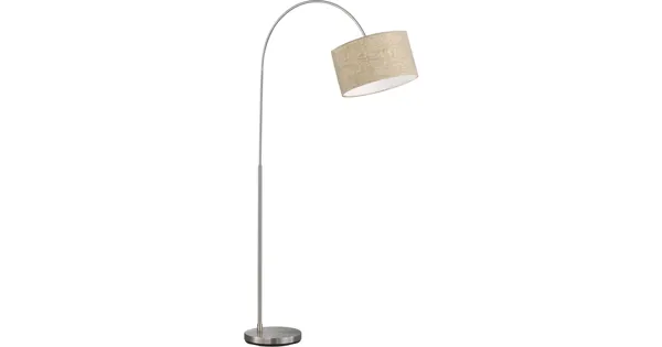 Die Stehleuchte Arc eignet sich gut als Wohn- oder Schlafzimmerlampe. Durch die schlichte Bogenform lässt sie sich prima hinter einem Sofa platzieren und kann optimal als Leselampe genutzt werden kann. Der Lampenschirm in Form eines Zylinders, der mit einem sandfarbenen Stoff bezogen ist, bündelt das Licht und sorgt für ein stimmungsvolles Ambiente. Die Leuchte kann bequem über den Schalter am Kabel bedient werden.