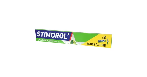 Stimorol Kaugummi mit Spearmint-Geschmack, ohne Zucker mit Süssungsmitteln.