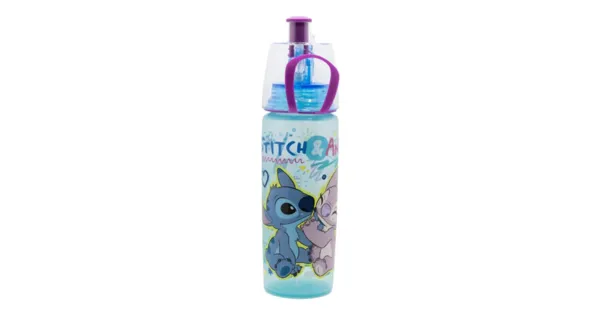 Erfrischung mit Stil! Die 575 ml Sprühflasche mit Stitch-Motiv kühlt dich mit einem feinen Sprühnebel.