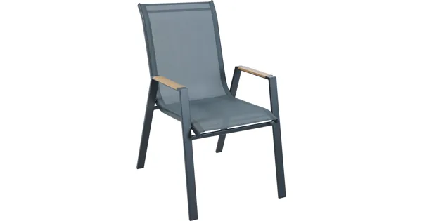 Der Stuhl Verona in edlem Anthrazit ist dein perfekter Begleiter für Momente der Entspannung. Mit seiner robusten Konstruktion aus Metall und einem Bezug aus hochwertigem Textilene bietet er nicht nur stilvollen Komfort, sondern ist auch extrem pflegeleicht. Die elegante Ablage aus Kunststoff Polywood setzt einen modernen Akzent und dank der Stapelfunktion ist der Stuhl ideal für jede Terrasse oder jeden Balkon, ohne dass du dich um Platzmangel sorgen musst. Die grosszügige Sitzfläche lädt dazu ein, lange Sommerabende gemütlich ausklingen zu lassen. Deine Wohlfühloase wartet auf dich!