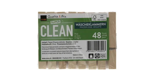 Super Clean Wäschklammern Holz, Fsc, 48 Stück