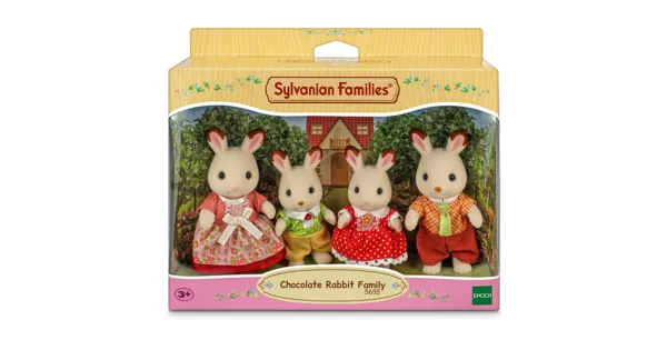 Die Schokoladenhasen Familie ist die bekannteste Familie der Sylvanian Families. Zur Familie Chocolate gehören Vater Frasier, Mutter Teri, Tochter Freya und Sohn Coco. Kopf, Arme und Beine der Figuren sind beweglich. Ihre Kleidung kann an- und ausgezogen werden. Die Figuren der Sylvanian Families Schokoladenhasen Familie sind zwischen 6 und 8 cm gross und für Kinder ab drei Jahren geeignet.