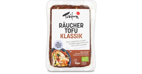 Aktion Räuchertofu – Zutaten: SOJABOHNEN* 63 %, Wasser, Sojasauce* (Wasser, SOJABOHNEN*, WEIZEN*, Meersalz), Gerinnungsmittel: Magnesiumchlorid, Calciumsulfat, Buchenholzrauch. *aus biologischem...