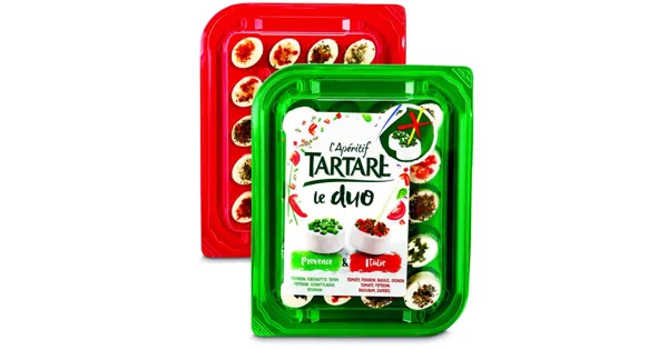 Tartare Apérifrais Prov.-Italie 2x100g. Französischer Doppelrahm-Frischkäse aus pasteurisierter Kuhmilch, garniert mit geschmackvollen Dekorationen. Unter Schutzatmosphäre verpackt. Hergestellt in...
