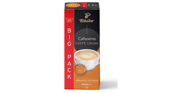 Röstkaffee, gemahlen Mit Cafissimo erleben Sie erlesene Kaffees aus einzigartigen Kaffeeanbaugebieten. Für jede unserer Aromakapseln verwenden wir beste Tchibo Kaffeebohnen, die in den sonnigen Anbauregionen langsam reifen. Sorgfältig ausgewählt von unseren Experten und durch die Tchibo Einzelröstung veredelt, geniessen Sie die samtige Crema und das einzigartig sanfte Aroma dieses Kaffees.Die Cafissimo 30er Vorratsbox bietet dank ihrer funktionalen Verpackung schnellen Zugriff auf die 30 einzeln enthaltenen Cafissimo Kapseln. Durch den praktischen Wiederverschluss lässt sie sich zudem ideal neben der Cafissimo Maschine oder im Küchenschrank verstauen und ist dabei durch ihr seitlich angeordnetes Design besonders schick. – Zutaten: Röstkaffee(100%). Zutaten: Röstkaffee(100%).