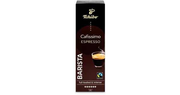 Röstkaffee, gemahlen Tchibo CafissimoBarista Espresso 10 Kapseln überzeugt mit einer ausgewogenen Komposition aus sorgfältig ausgewählten Arabica-Bohnen. Die schonende Röstung entfaltet einen intensiven Geschmack und feine Aromen, ideal für Kaffeeliebhaber. In praktischen Kapseln verpackt, ermöglicht er die schnelle Zubereitung eines hochwertigen Espressos. – Zutaten: Röstkaffee(100%). Zutaten: Röstkaffee(100%).