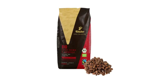 Röstkaffee, in ganzen Bohnen Der Bio-Espresso aus der Tchibo Vista Collection schmeckt samtig-kraftvoll mit Anklängen von dunklen Beeren und Akazienhonig. – Zutaten: Röstkaffee(100%). Zutaten: Röstkaffee(100%).
