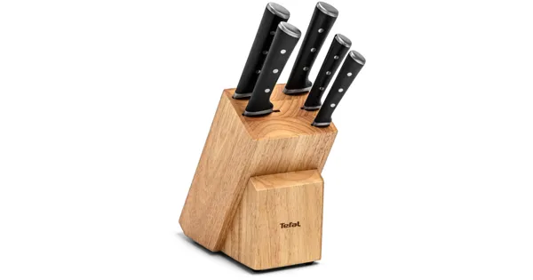 Der Tefal Messerblock Ice Force 6-teilig enthält 1 Kochmesser, 1 Santokumesser, 1 Brotmesser, 1 Universalmesser und 1 Schälmesser