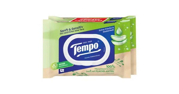 Feuchtes Toilettenpapier von Tempo, welches sanft & sensitiv für die Haut ist.