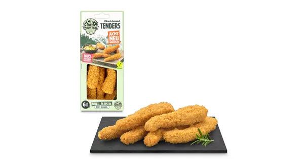 Veganes Erzeugnis auf Basis von Weizenprotein, paniert, frittiert, aufgetaut – Zutaten: Wasser, texturiertes Weizenprotein 16 % (WEIZENPROTEIN, WEIZENMEHL), Paniermehl (WEIZENMEHL, Speisesalz, Gewürze, Hefe), Kartoffelstärke, Sonnenblumenöl, Rapsöl, Zwiebelextrakt fermentiert, WEIZENMEHL, Erbsenfasern, Orangenfasern, SOJAPROTEIN, WEIZENSTÄRKE, natürliches Aroma, Speisesalz, Speiseessig, Traubenzucker, Gewürze, färbendes Karottensaftkonzentrat, färbendes Randensaftkonzentrat, Curry. Zutaten: Wasser, texturiertes Weizenprotein 16 % (WEIZENPROTEIN, WEIZENMEHL), Paniermehl (WEIZENMEHL, Speisesalz, Gewürze, Hefe), Kartoffelstärke, Sonnenblumenöl, Rapsöl, Zwiebelextrakt fermentiert, WEIZENMEHL, Erbsenfasern, Orangenfasern, SOJAPROTEIN, WEIZENSTÄRKE, natürliches Aroma, Speisesalz, Speiseessig, Traubenzucker, Gewürze, färbendes Karottensaftkonzentrat, färbendes Randensaftkonzentrat, Curry.