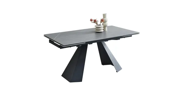 Der moderne Tisch Mitch wird bestimmt zum neuen Mittelpunkt in deiner Wohnung. Mit seiner eleganten, grauen Keramik-Tischplatte bringt er zeitlose Eleganz ins Esszimmer. Der Tisch ist nicht nur optisch ein Highlight, sondern bietet dank seiner beidseitigen Ausziehfunktion von je 40 cm auch ausreichend Platz für gesellige Runden oder gemütliche Abende mit der Familie. Dank der soliden und futuristisch gestalteten Metallkonstruktion in stilvollem Schwarz überzeugt Mitch durch Stabilität und Langlebigkeit. Nutze die Gelegenheit und bereichere dein Zuhause mit diesem multifunktionalen und formschönen Möbelstück.