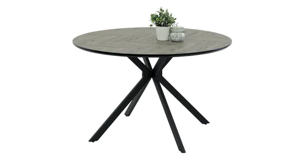 Der Tisch Petra bietet genau die richtige Mischung aus Eleganz und Funktionalität. Die hellgraue Tischplatte mit raffinierter Schweizer Kante zieht alle Blicke auf sich. Die Fischgrät-Optik verleiht deinem Esszimmer ein modernes und urbanes Flair. Das robuste Metallgestell sorgt nicht nur für Stabilität, sondern rundet das Design perfekt ab. Mit einem Durchmesser von 120 cm bietet der Tisch ausreichend Platz für ein gemütliches Beisammensein mit Freunden und Familie.