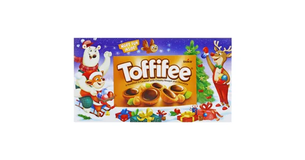 Die Haselnuss (10 %) in Caramel (41 %) mit Nougatcreme (37 %) und Schokolade (12 %) – Zutaten: Zucker, pflanzliche Fette (Palm, Shea), HASELNÜSSE, Glukosesirup, MAGERMILCHPULVER, Feuchthaltemittel Sorbitsirup, Kakaomasse, kondensierte MAGERMILCH, kondensierte SÜSSMOLKE, MILCHZUCKER, magerer Kakao, Kakaobutter, BUTTERREINFETT, Rohrzuckersirup, MOLKENERZEUGNIS, Emulgator Lecithine (SOJA), Salz, Aromen. KANN AUCH MANDEL, ERDNUSS UND ANDERE NÜSSE ENTHALTEN. Zutaten: Zucker, pflanzliche Fette (Palm, Shea), HASELNÜSSE, Glukosesirup, MAGERMILCHPULVER, Feuchthaltemittel Sorbitsirup, Kakaomasse, kondensierte MAGERMILCH, kondensierte SÜSSMOLKE, MILCHZUCKER, magerer Kakao, Kakaobutter, BUTTERREINFETT, Rohrzuckersirup, MOLKENERZEUGNIS, Emulgator Lecithine (SOJA), Salz, Aromen. KANN AUCH MANDEL, ERDNUSS UND ANDERE NÜSSE ENTHALTEN.