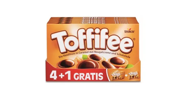 Die Haselnuss (10 %) in Caramel (41 %) mit Nougatcreme (37 %) und Schokolade (12 %) – Zutaten: Zucker, pflanzliche Fette (Palm, Shea), HASELNÜSSE, Glukosesirup, MAGERMILCHPULVER, Feuchthaltemittel Sorbitsirup, Kakaomasse, kondensierte MAGERMILCH, kondensierte SÜSSMOLKE, MILCHZUCKER, magerer Kakao, Kakaobutter, BUTTERREINFETT, Rohrzuckersirup, MOLKENERZEUGNIS, Emulgator Lecithine (SOJA), Salz, Aromen. KANN AUCH MANDEL, ERDNUSS UND ANDERE NÜSSE ENTHALTEN. Zutaten: Zucker, pflanzliche Fette (Palm, Shea), HASELNÜSSE, Glukosesirup, MAGERMILCHPULVER, Feuchthaltemittel Sorbitsirup, Kakaomasse, kondensierte MAGERMILCH, kondensierte SÜSSMOLKE, MILCHZUCKER, magerer Kakao, Kakaobutter, BUTTERREINFETT, Rohrzuckersirup, MOLKENERZEUGNIS, Emulgator Lecithine (SOJA), Salz, Aromen. KANN AUCH MANDEL, ERDNUSS UND ANDERE NÜSSE ENTHALTEN.
