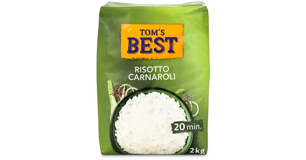 Reis Tom's Best Risotto Carnaroli bietet Ihnen die ideale Basis für ein cremiges Risotto. Hergestellt aus hochwertigen Carnaroli-Reiskörnern, garantiert es ein perfektes Kochergebnis. Geniessen Sie den authentischen Geschmack und die angenehme Textur dieses erstklassigen Reisprodukts. – Zutaten: Reis (Italien). Zutaten: Reis (Italien).