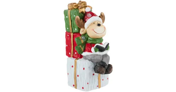 Diese zauberhafte Tonfigur eines Hirsches auf Geschenken bringt festliche Stimmung in jedes Zuhause. Mit einer Höhe von 35 cm und einem strahlenden LED-Licht schafft sie eine warme und einladende...