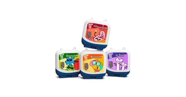 Hörfigur für die Toniebox: Tonies sind Hörfiguren für die Toniebox. Sie machen Hören anfassbar, denn mit ihnen bedient man die Toniebox. Man kann sie aber auch sammeln und mit ihnen spielen. Um der Musik zu lauschen, stellt man die Hörfigur einfach auf die Toniebox. Herzlich willkommen zu Bühne frei für…! In dieser neuen Show dreht sich alles um die grossartigen, faszinierenden und manchmal auch etwas ekligen Bestandteile und Systeme, die dafür sorgen, dass der menschliche Körper funktioniert. Moderiert wird das Spektakel von der reizenden Ellen Bogen und ihrem witzigen Co-Moderator Lin Darm. Jede Folge nimmt ein anderes Körpersystem unter die Lupe und verwandelt komplexe Themen in eine spannende Show. Schwungvolle Musiknummern, urkomische Comedy-Routinen, knifflige Quizfragen und überraschende Gastauftritte erwarten euch bei dieser Talkshow der besonderen Art. Dieses Set beinhaltet vier Clever Tonies: Das SkelettDas ImmunsystemDer VerdauungstraktDas NervensystemAchtung: Produkt ist ausschliesslich in deutscher Sprache erhältlich!