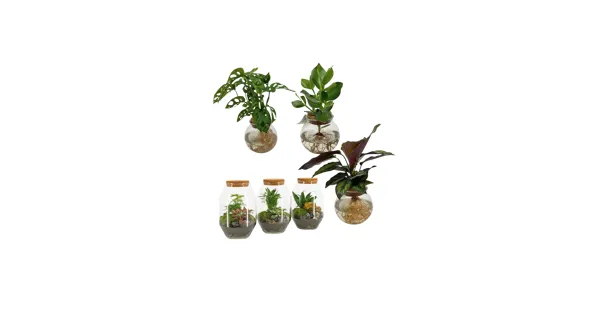 • Ø-Gefäss: 7 - 19 cm (je nach Modell) • Intenz Hydro & Flaschengarten • Ø-Glas 12- bzw. 17 cm, Höhe ca. 25 cm • Kein grüner Daumen? Terrarien sind ideal! Bei dauerhaftem Beschlag einfach 2-mal pro Woche für ein paar Stunden lüften - fertig. Kein Giessen notwendig • Alle zwei Wochen die Wurzeln spülen und das Wasser wechseln. Nur die Wurzeln unter Wasser setzen