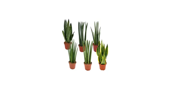 Ø-Gefäss: 7 - 19 cm (je nach Modell), Sanseveria-Mix, Ø-Topf: 14 cm, Höhe ca. 44 - 50 cm
