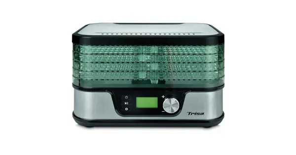 Trockenfrüchte als gesunde Snack Alternative. Schonendes Trocknen von Früchten, Gemüse, Pilzen und Kräutern (zwischen 1 – 24 h). Umluftventilator für gleichmässige Hitzeverteilung (35 – 75°C wählbar). LC-Display für Zeit- und Temperaturregulierung. 5 stapelbare Dörrgitter (ca. 30 x 23 cm) und ein Netz für Kräuter. Höhenverstellbare Etagen für mehr Volumen (ca. 1.5 - 3 cm). Gesamtfläche entspricht etwa zwei Backblechen.