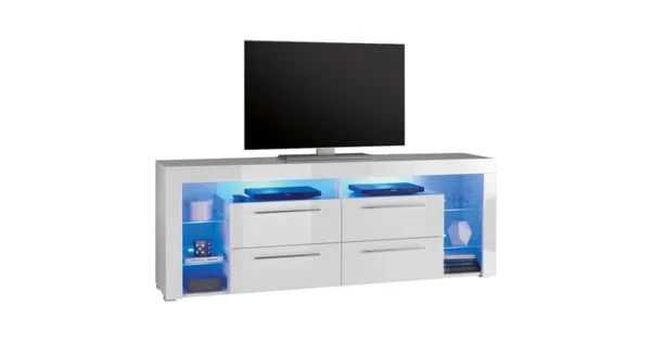 Das TV-Möbel Goal bietet mit den vier Schubladen und den sechs offenen Fächern viel Platz für Ihr Hab und Gut. Durch die LED-Beleuchtung wird dieses Möbelstück zu einem Hingucker in Ihrem Wohnzimmer.