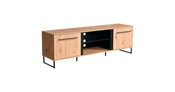 Das TV-Möbel Sardinia ist eine Kombination aus warmer, natürlicher und rustikaler Eiche und subtilen schwarzen Elementen, welche ein Merkmal des Industriestils sind. Die Ablagefläche ist schön gross, sodass dein Fernseher darauf gut zur Geltung kommt. Die zwei geschlossene Seitenteile sowie ein offener Teil mit Glasablage tragen wirkungsvoll zur Organisation des Wohnzimmers bei und bieten auch Platz, um eine schöne Dekoration zu gestalten. Es besteht die Möglichkeit, eine zusätzliche Beleuchtung zu installieren.