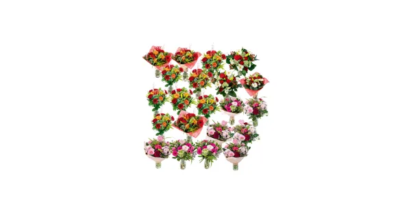 Voluminös gebunden, ca. 28 Stiele je Bund, Stiellänge 50 cm, verschiedene Farbkombinationen, inkl. Dekostecker